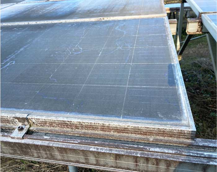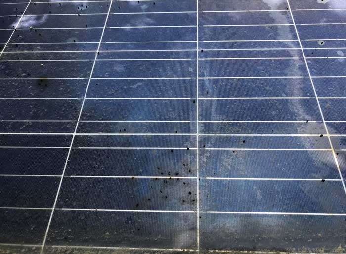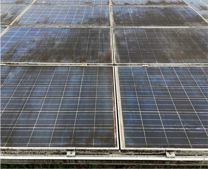 太陽光パネルの性能低下の主な原因は、長期間の洗浄不足によるこびりついた汚れです。