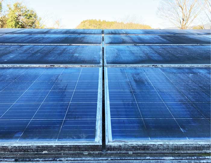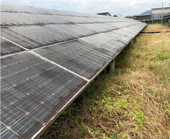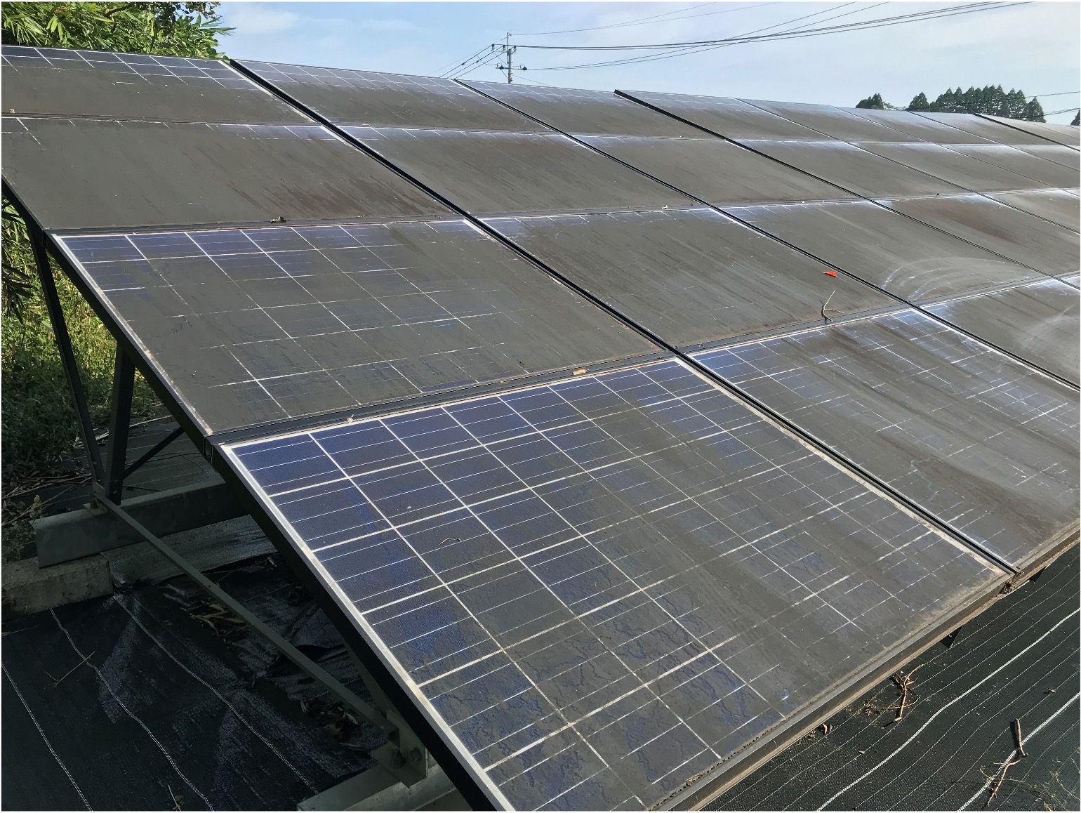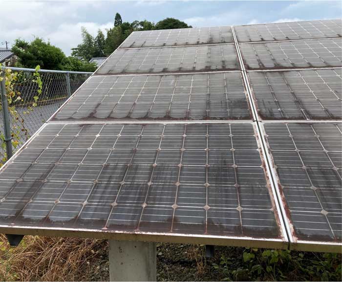 特に、畜産施設の近くや樹木が近い場所では、糞尿成分や樹液がパネルに蓄積し、黒く変色することで発電効率が大きく落ちます。