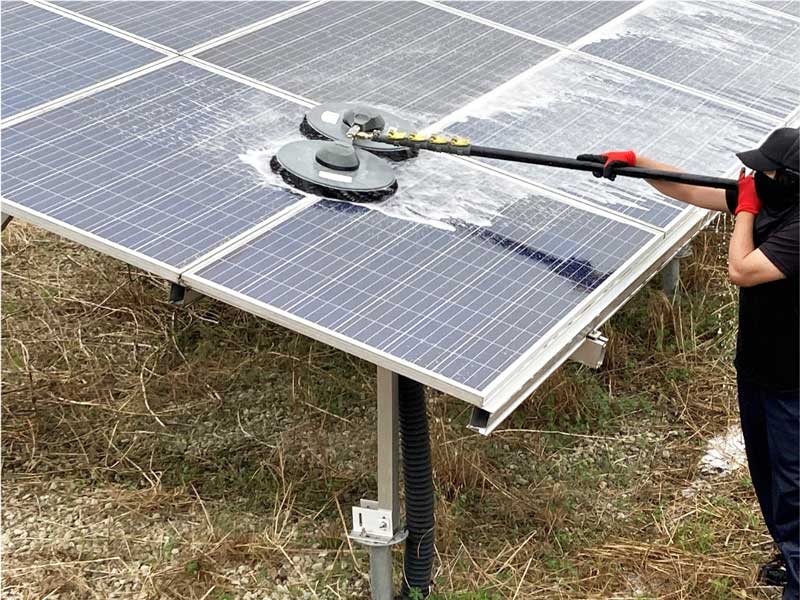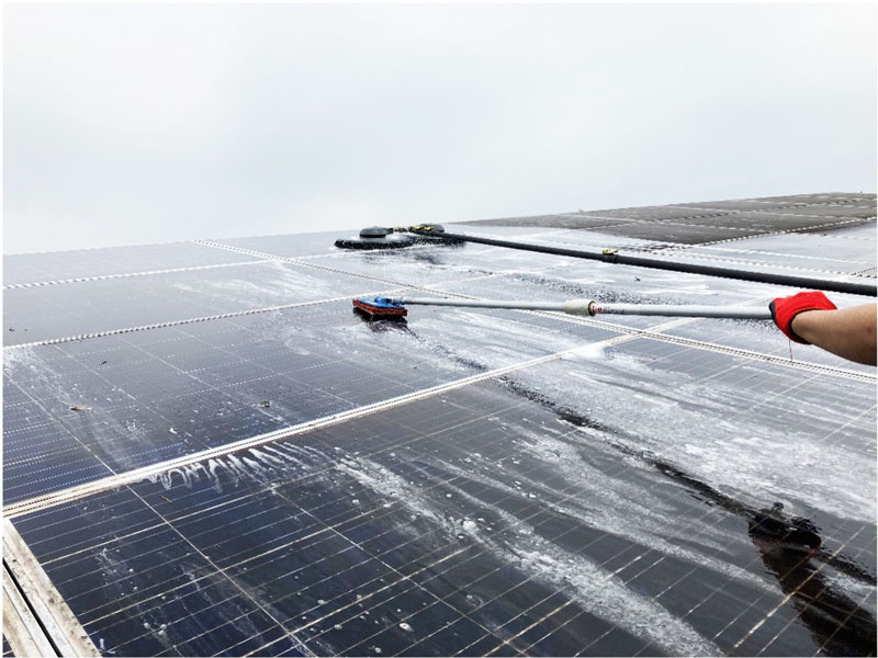 また、 状況に応じてパネル洗浄専用の回転ブラシ「アイソーラー(isolar) - ケルヒャー製」も兼用して洗浄します。